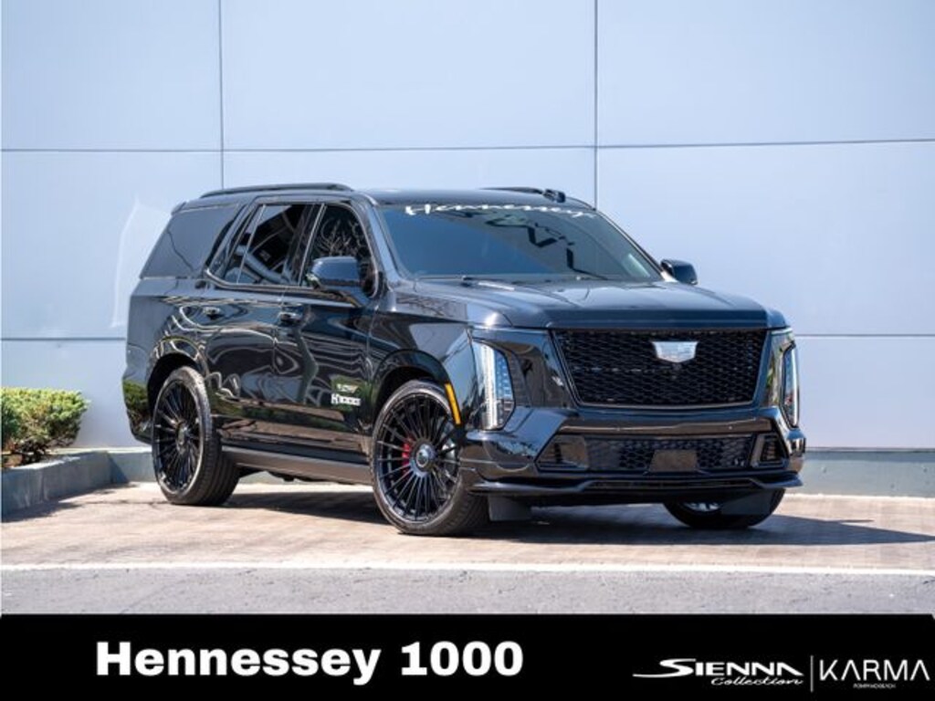2025 Cadillac Escalade-V Hennessey H1000 â" 1,000 HP Black on Black Ultra-Rare Experience the absolute pinnacle of luxury SUV performance with this 2025 Cadillac Escalade-V Hennessey H1000, a breathtaking fusion of full-size luxury, cutting-edge technology, and 1,000 horsepower of hand-built performance. Finished in a deep gloss black exterior over a premium black leather interior, this Escalade commands presence from every angle. Already the most powerful SUV Cadillac produces, this example has been elevated further by the renowned performance engineers at Hennessey Performance Engineering with their exclusive H1000 upgrade package, transforming the supercharged V8 into a true hyper-SUV powerplant. With approximately 1,000 horsepower and 966 lb-ft of torque, the H1000 Escalade-V delivers astonishing acceleration while maintaining the refinement, comfort, and technology expected from a flagship Cadillac luxury SUV. Performance Highlights Hennessey H1000 Performance Upgrade 1,000 HP / 966 lb-ft Torque Hand-built upgraded 6.2L supercharged V8 Performance camshaft upgrade Ported cylinder heads High-flow supercharger system Upgraded intake & fuel system Stainless performance exhaust Dyno-tested and individually serialized by Hennessey Luxury & Technology This Cadillac Escalade-V remains the benchmark for luxury SUVs, featuring: 38-inch curved OLED display AKG Studio Reference 36-speaker sound system Super Cruise hands-free driving Premium quilted leather interior Heated & ventilated front and rear seats Panoramic glass roof Night vision system Surround-view camera system Rear seat entertainment Power retractable running boards Adaptive air ride suspension Heads-up display Condition Like new condition Garage kept Non-smoker vehicle Clean history Fully serviced and meticulously maintained Exclusivity Vehicles upgraded by Hennessey Performance Engineering are produced in extremely limited numbers, making this Escalade-V H1000 not only an extraordinary performance machine but also a highly collectible luxury SUV.